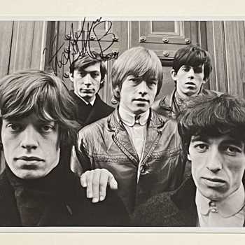 The Rolling Stones Terry O’Neil Silver Gelatin print Signed by Charlie Watts Frame: 17” x 20.5” Image: 10.5” x 14” This photo was taken at Hanover Square in 1964