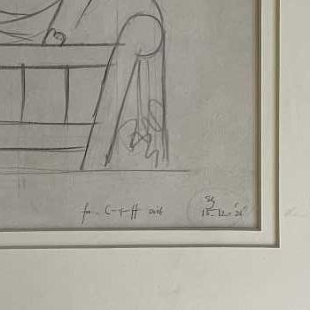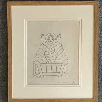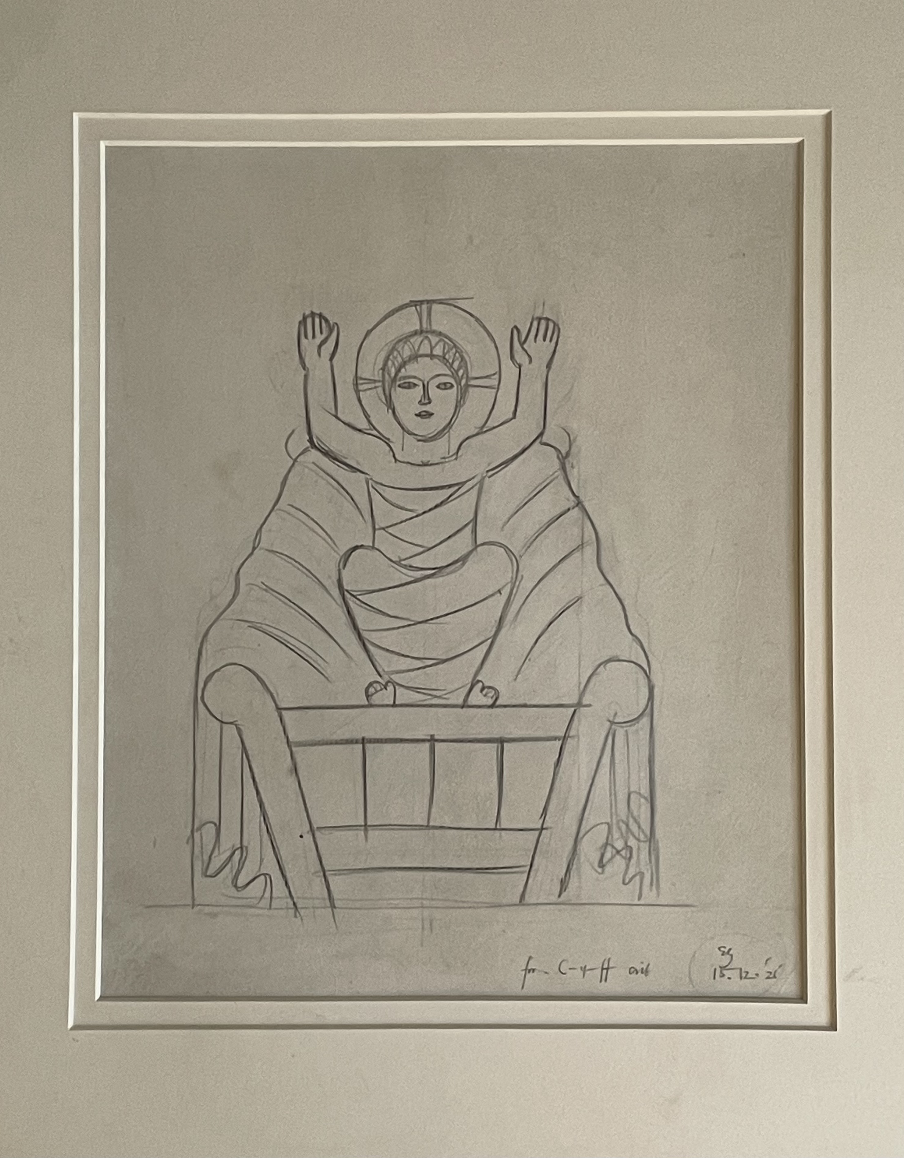Eric Gill The Infant Christ Pencil Signed with Initials. Inscribed and dated 15.12.25 Frame: 20” x 18” Image: 13" x 10.5" This is a preparatory sketch for the crib sculpture at Capel-y-ffin.