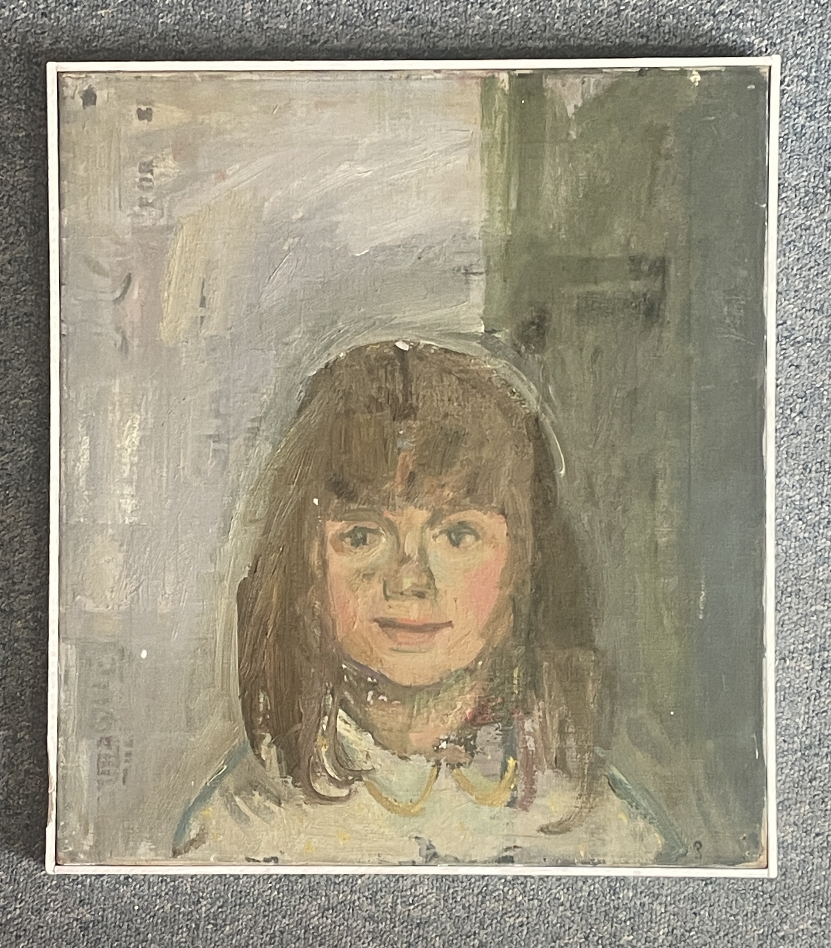 Gerald Rose Portrait of a Girl Oil on Board Image: 18” x 16” Frame:18.5” x 16.5” Provenance: from his estate Gerald Rose (1935-2023) was a renowned British Illustrator and author of children's books. He studied at the Lowestoft School of Art, followed by the Royal Academy Schools and gained prominence in the 1960s, often collaborating with his wife Elizabeth Rose. Their book ' Old Winkle and the Seagulls' won the prestigious Kate Greenaway medal in 1960.