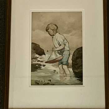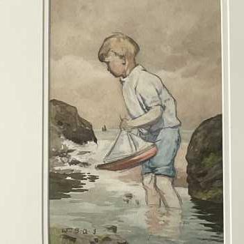 Boy with Toy Boat William Ingles (1884 - 1946) Frame: 18” x 14” Image: 11” x 7” William Ingles lived in Hawick, Roxburghshire, Scotland. The 1901 Census shows that William was then a young art teacher in Hawick. He later exhibited at the Royal Scottish Academy.