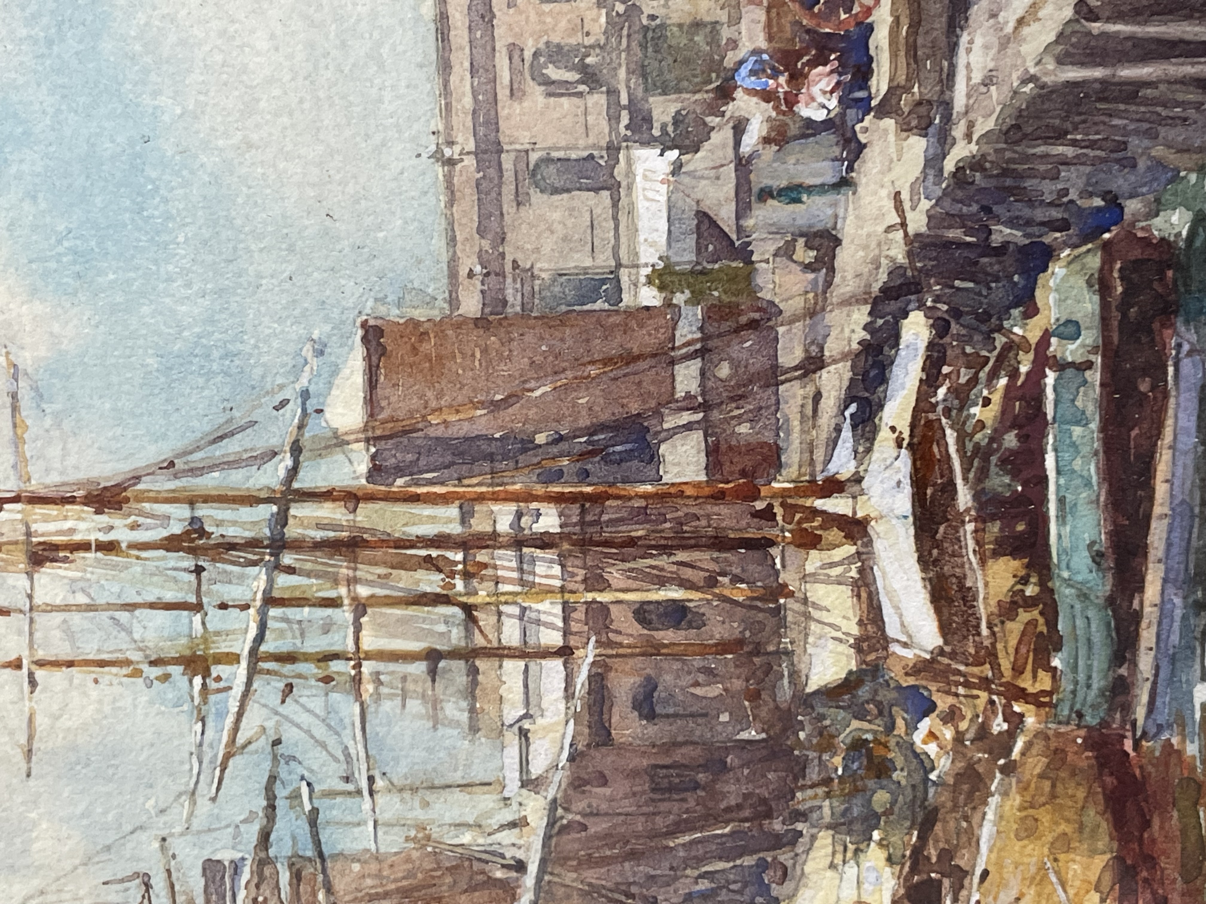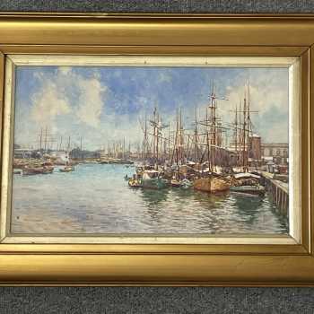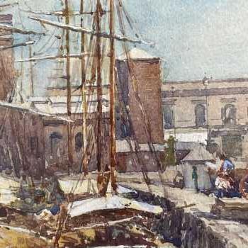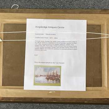 Buenos Aires Dock Charles Edwin Flower (1871-1951) Watercolour Frame: 13” x 18” Image: 8” x 13” Charles Edwin Flower is best known as a postcard artist, being one of Raphael Tuck’s most prolific artists, contributing around 300 paintings over a long career. He exhibited at the Royal Academy from 1899.
