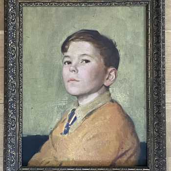 Paul Dessau Portrait of a Boy Oil on Canvas Frame: 22” x 17” Image: 17” x 14” Paul Lucien Dessau, (15 September 1909 – 3 September 1999), was a British artist best known for the paintings he produced during the Second World War whilst serving as a fireman in London. After the war Dessau, and his wife whom he had married in 1935, moved out of London and settled in the country, where he pursued a career as a successful portrait painter.[3] He was also an accomplished, and largely self-taught, pianist and, less successfully, an inventor of household gadgets.